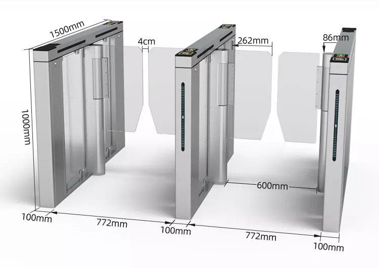 SuBG1000 is a high end peed gate for commercial building with brush-less DC motor. Its reacting time to open the door is 0.2s, and the pass rate reaches 40p/m. Failure-free operation more than 500M times. The speed gate turnstile has 40 optical grating transducers, and sensing distance reaches 30 mm.