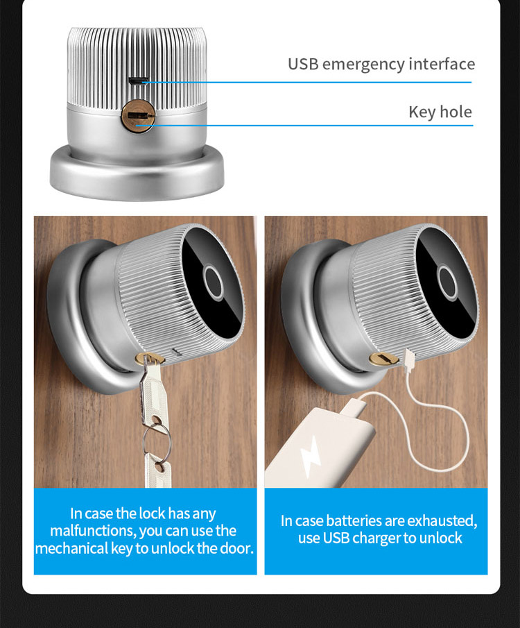 | Unlock way | BLE APP/ IC card/fingerprint/Passcode/mechanical key |