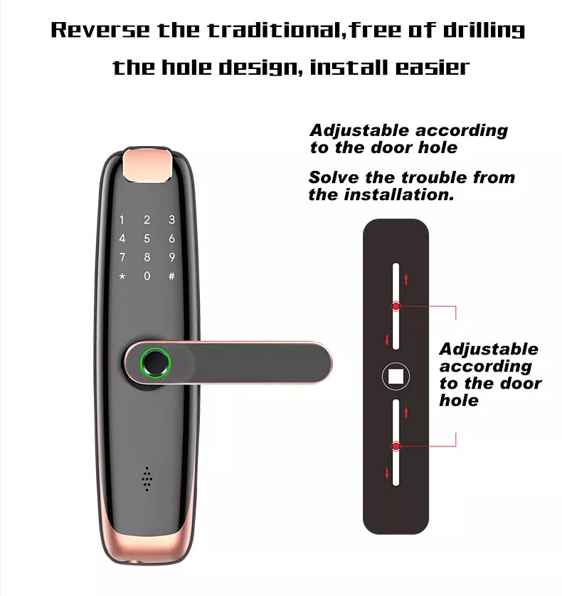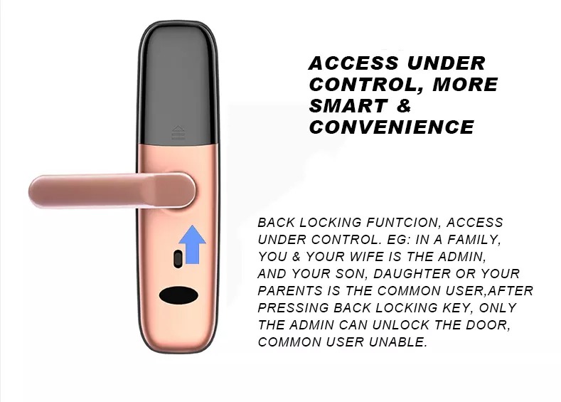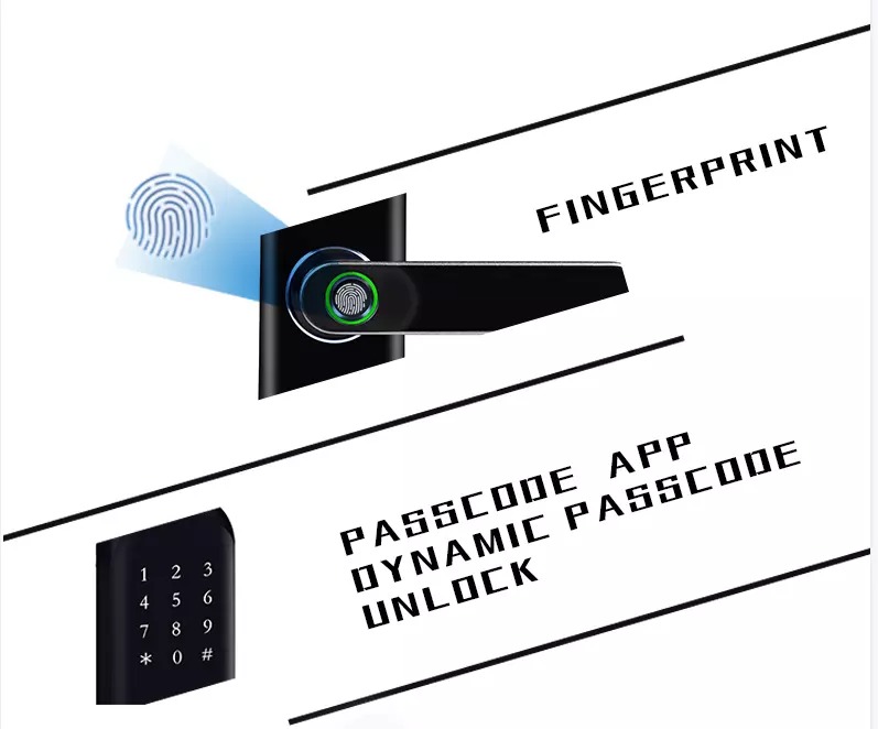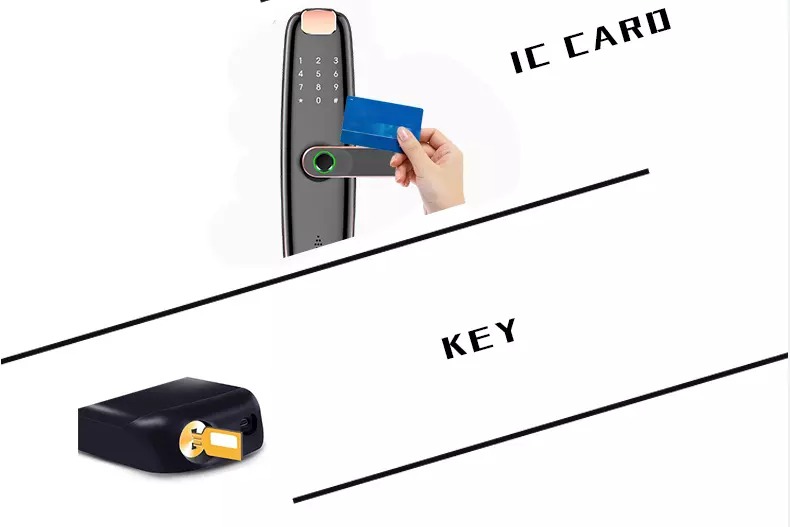 >5 in 1 unlocking methods: Fingerprint + pin code + key + card + APP
